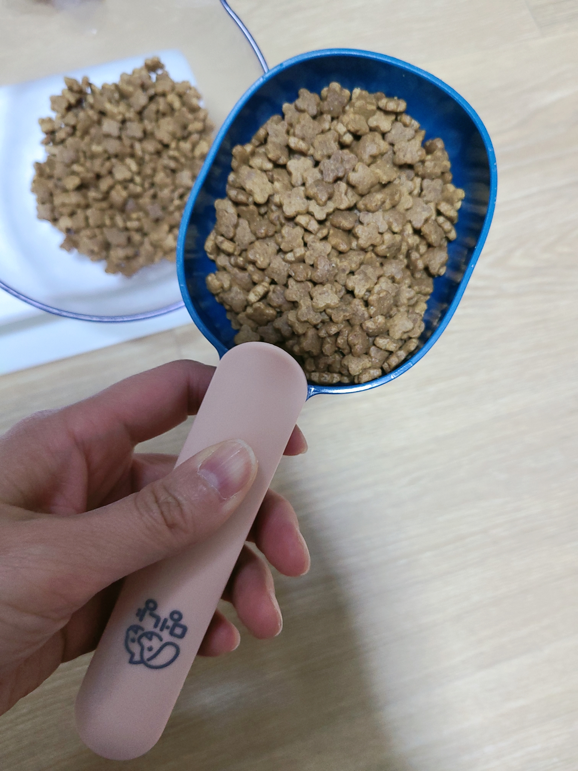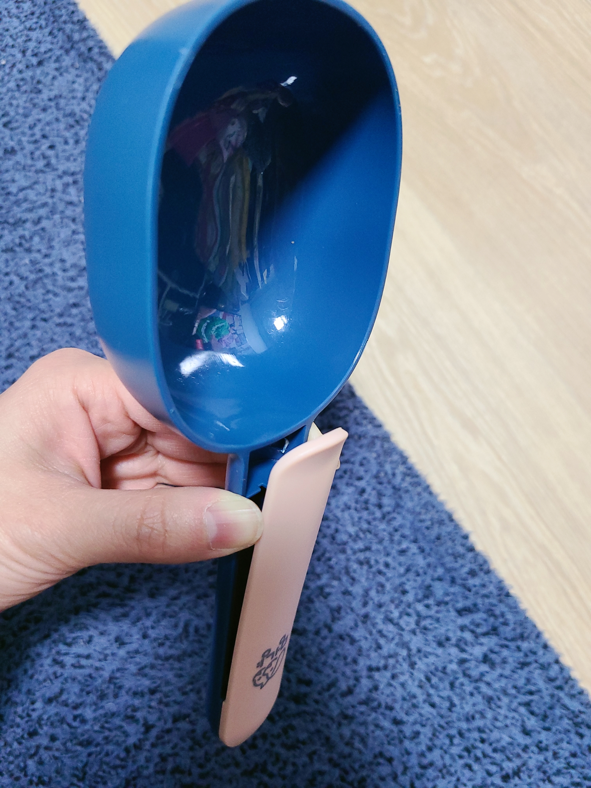 그리고 사진처럼 손잡이가 클립 형태라 사료 봉지에 집게 형식으로 꽂아 둘수 있어 밀봉이 가능해요. 처음에는 몰랐다가 이 리뷰를 쓰려고 사진 찍다가 알게 됐어요... 이런 멍충이 같으니 ㅋㅋㅋㅋㅋㅋㅋㅋㅋㅋ