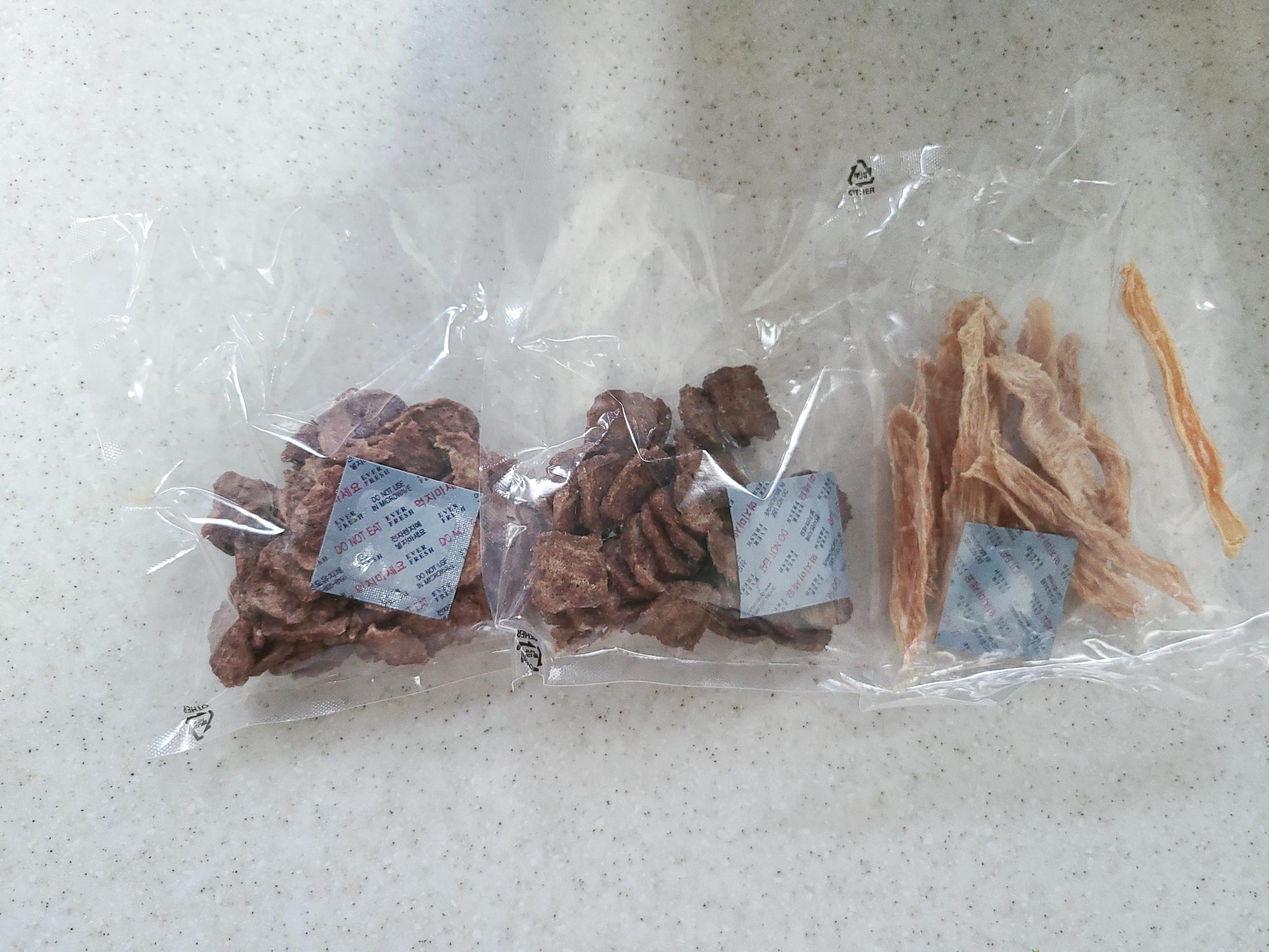 제주펫 공식 스토어에서 처음 구매할 때 말고기육포랑 흑돼지안심육포 이렇게 2가지 구매했었는데, 흑돼지고구마포를 소분하여 담아서 서비스로 주셨더라고요. 배찌가 이것 또한 너무 잘 먹길래 구매 ^0^