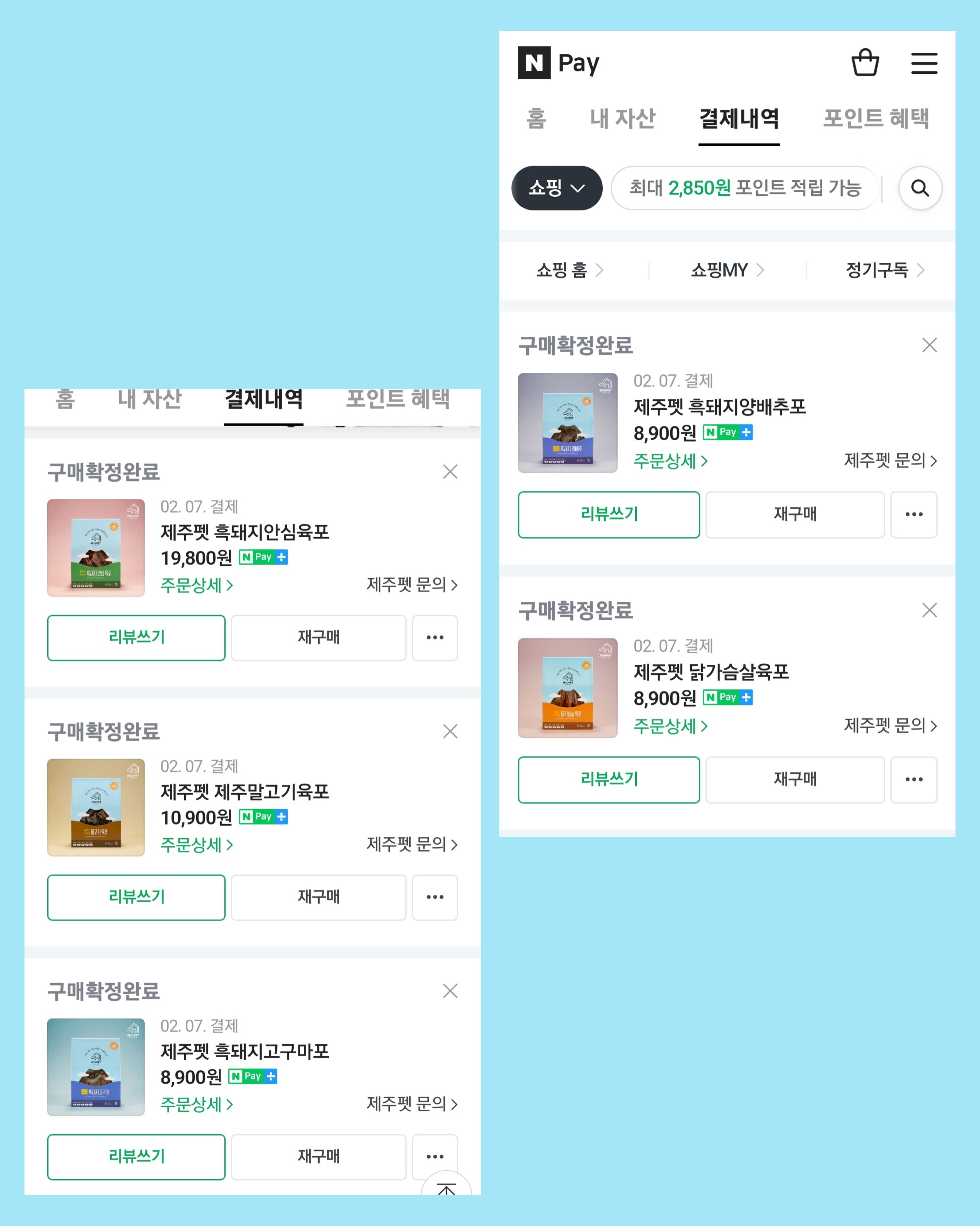 간식 구매를 위해 제주펫 공식 스토어에 들어가 고양이에게 급여 가능한 육포란 육포는 다 쓸어 담았다는ㅋㅋㅋㅋㅋㅋㅋㅋㅋㅋ 사실, 현생이 바빠 체크를 못하고 있다가 재구매를 미리 하기도 전에 육포가 다 떨어져 버려서 며칠간 다른 간식을 줬는데도 배찌가 간식 두는 장소를 매일 쳐다보며 울어가지고... 마음이 너무 아팠어요 ㅠㅠ 그래서 미안한 마음에 맘껏 먹어봐라!!! 싶어 구매를 왕창 했다는ㅋㅋㅋㅋㅋㅋㅋㅋㅋㅋ