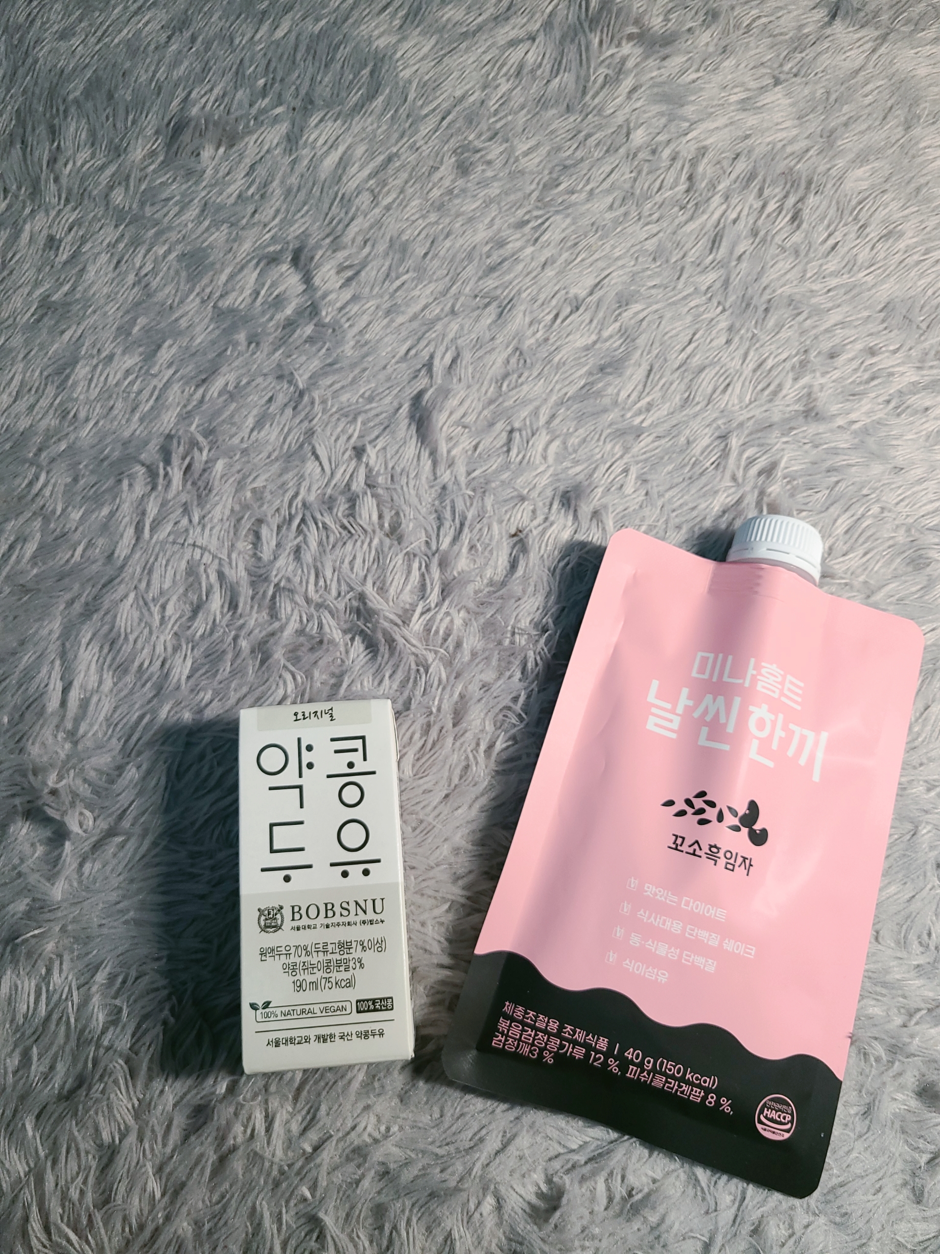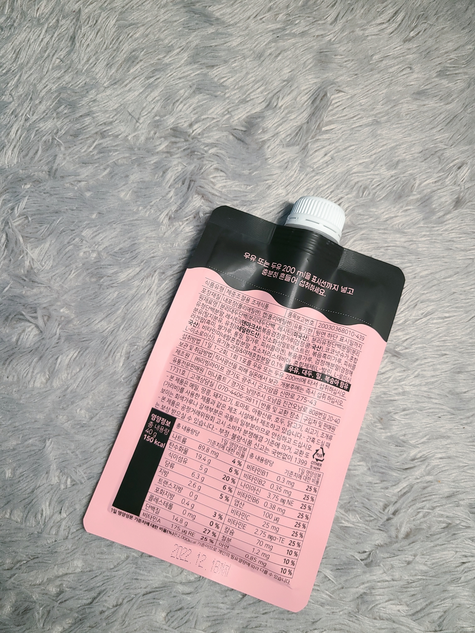 저는 많이 단거를 안좋아해서 초코칩 초코맛은 패스하고, 일부러 꼬소흑임자 맛만 4박스 구매했어요. 흑임자맛이 크게 느껴지진 않았지만 이름 그대로 너무 고소하고 맛있는거 있죠? 물에 타먹어 보기도 했는데, 두유를 넣고 타 먹었을때보단 아니었지만 그래도 고소하고 맛있었어요!! 사진에 있는 저 약콩두유가 진짜 건강한 병맛이라ㅋㅋㅋ 두유가 병맛인데 맛있는거면 쉐이크가 맛있는거죠? ㅋㅋㅋ 그리고 씹히는게 있는데 피쉬콜라겐 팝이라는데 신의한수!!! 아침에 바빠서 식사 못하고 나갈때 두유랑 들고 나가서 타먹는데, 포만감이 진짜 오래 가더라구요... 점심때가 되었는데도 배가 많이 안고팠어요! 한팩에 14g 이상의 단백질과 5g의 식이섬유, 성분도 좋은거 같아요. 화장실도 잘 가게 되는거 같아용^^