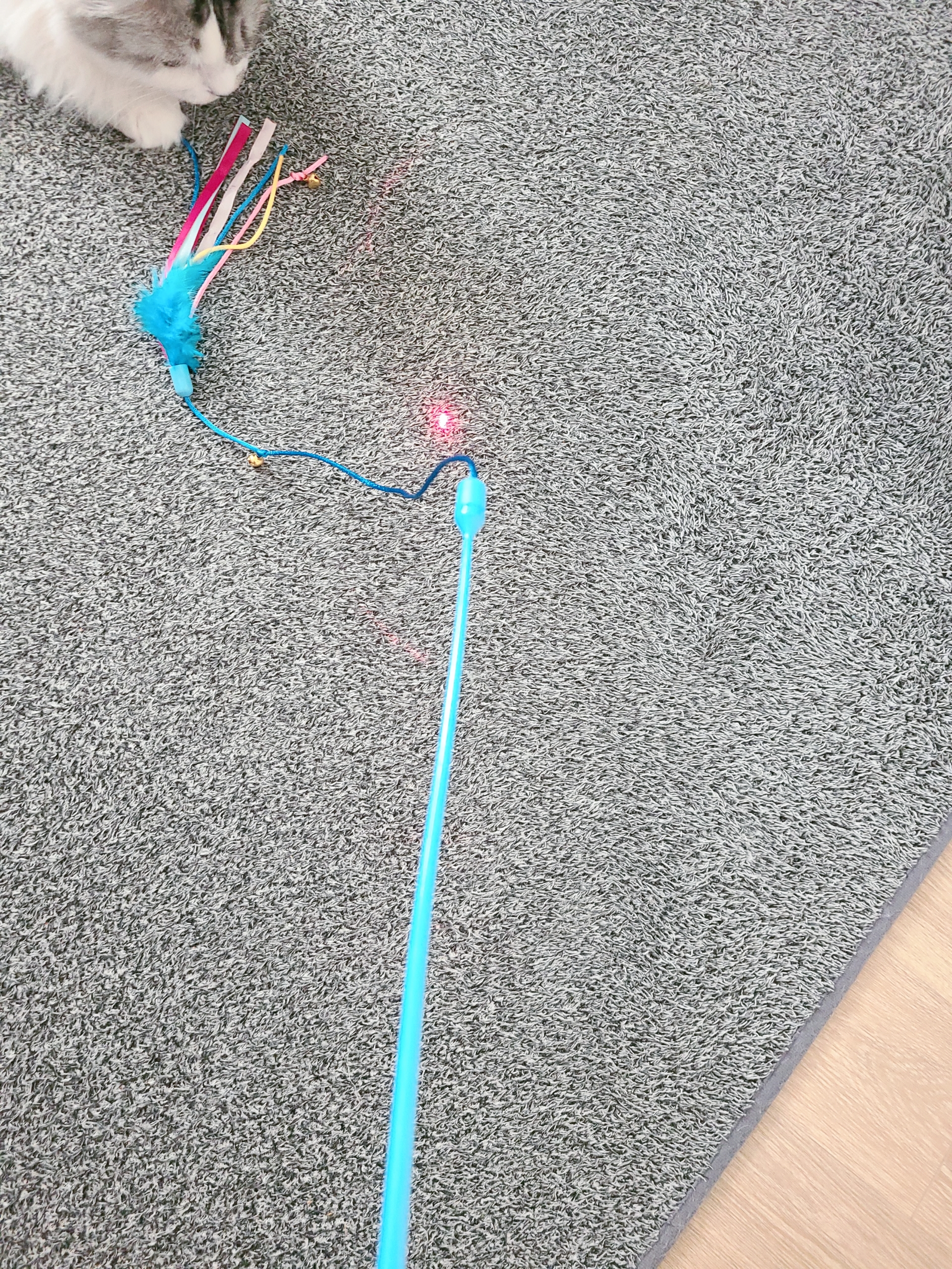 제 개인적인 생각은 가성비 개꿀인 찐템인거 같아요! 레이저가 사람 눈에 위험하듯, 고양이 눈에도 위험할까봐 조심해야 하는 단점이 있지만, 냥이들이 반응하는 방울+레이저+리본 3가지의 조합이 최고입니다 ㅎㅎㅎ 가격도 싸고, 냥이도 좋아하고 1석 2조^^