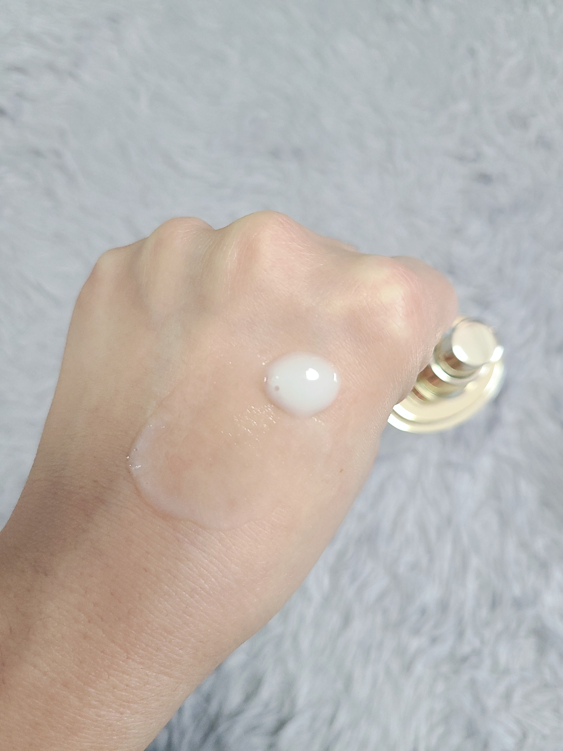 펌핑형이라 손등에 가볍게 펌핑을 한번 해보았는데, 우유 같은 색이죠? 고농축, 고영양 치고는 주르륵 흐르는 엄청 부드러운 텍스처이고 흡수도 피부에 바로 쫘악 되는 쫀쫀한 느낌이에요. 공식 홈페이지에 언급되어있는 압도적인 흡수율 진짜 쩔어요ㅋㅋㅋㅋㅋㅋㅋㅋㅋㅋ 찝찝한 잔여감이나 끈적임도 전혀 없어요.